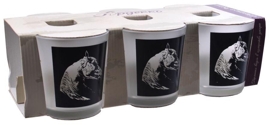 Набор стаканов 6шт 250мл стекло Символ года 2026 "Голова лошади в рамке" черный, матовый (6)