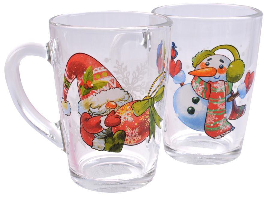 Кружка 300мл стекло капучино "Новый год" (20)@