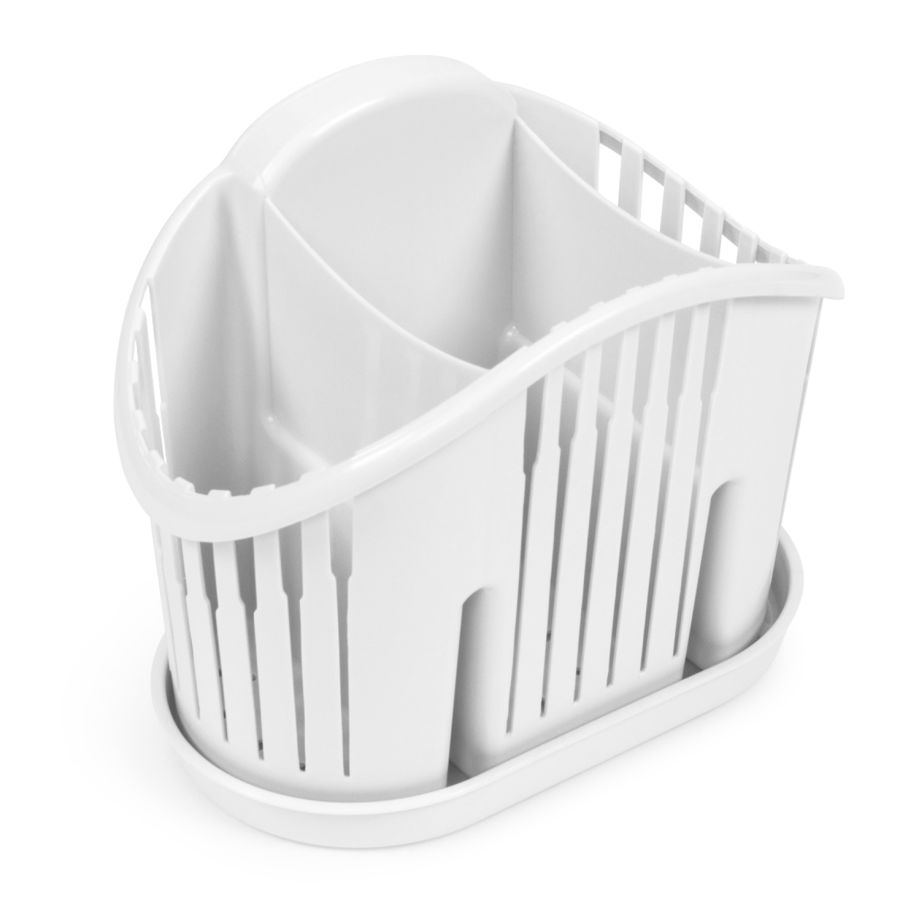 Сушилка для столовых приборов пласт. 195*170*75мм, 3 отсека, пласт. поддон, цвет белый (20)
