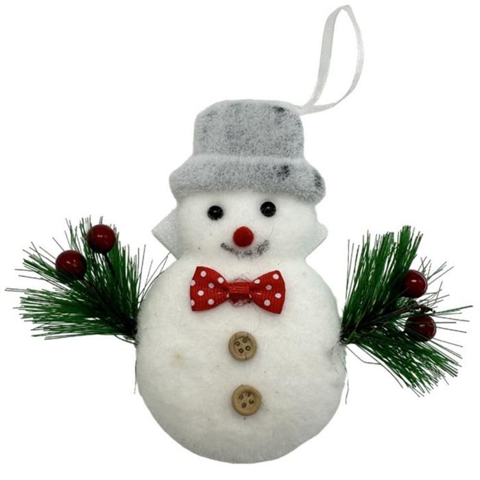 Елочное украшение Снеговик в шляпе 13см, с ворсом