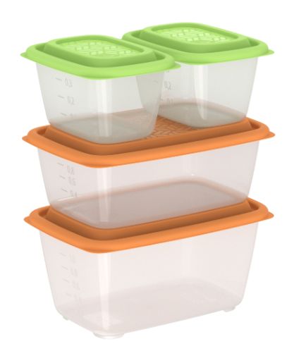 Набор контейнеров пласт. 4шт (0,45л*2шт; 1,1л; 1,5л), универсальные (СВЧ/Заморозка) "Гурман" (36)