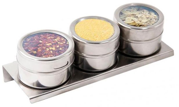 Набор для специй нерж. 4шт, на магнитах, нерж. подставка "ZEIDAN"