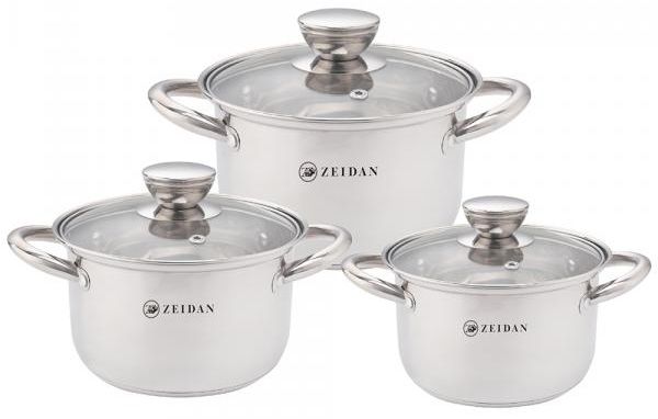 Набор кастрюль нерж. 3шт (1,9л; 2,6л; 3,6л), ст. крышки, нерж. ручки, 3-х слойное капс. дно индукция