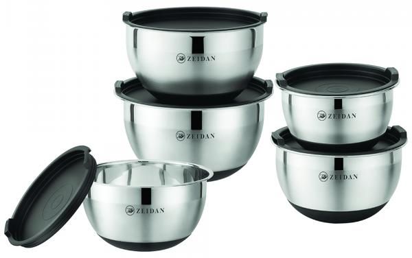 Набор мисок (салатников) нерж. 5шт (1,2л, 1,5л, 2,5л, 3л, 4,2л), с пласт. крышками, силикон. дно