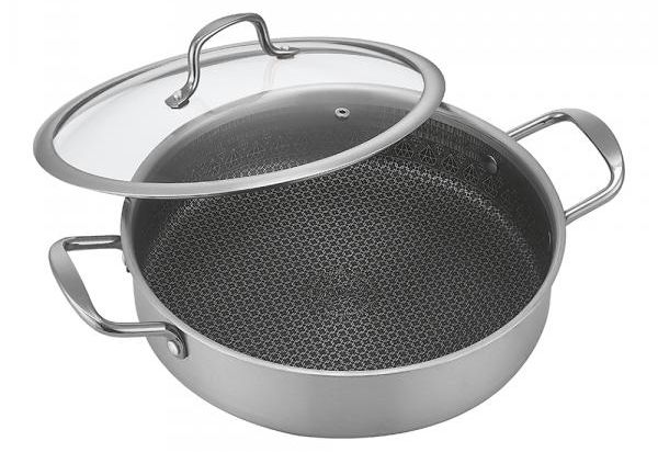 Сковорода-жаровня нерж. 260мм, ст. крышка, нерж. ручки, а/п с защитной сеткой, индукция "Zeidan"
