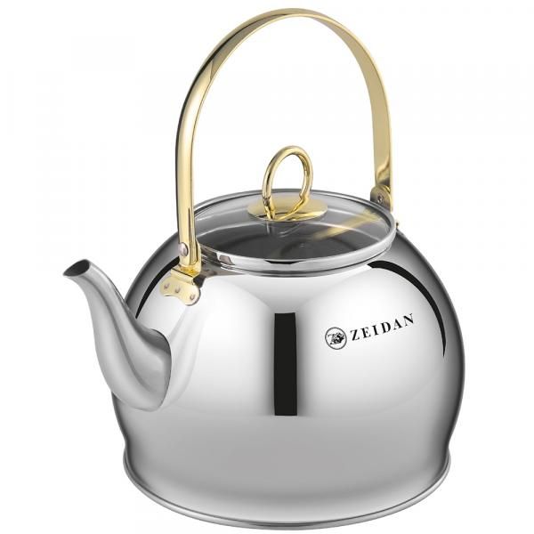 Чайник нерж. 2,5л, без свистка, ст. крышка, нерж. ручка "под золото", индукция "ZEIDAN" @