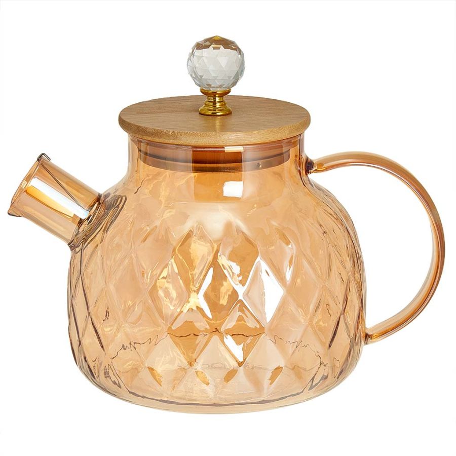 Чайник заварочный стекло 1000мл, нерж. фильтр-пружинка, бамбук. крышка