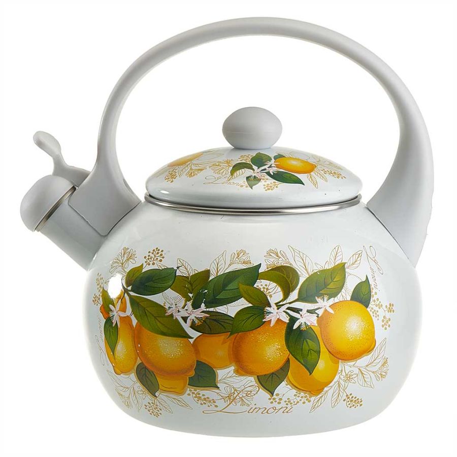 Чайник эм. 2,5л, со свистком, пласт. ручка, индукция "METALLONI "Лимоны" (6) @