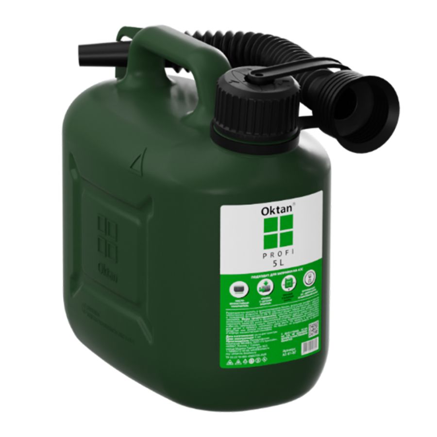 Канистра пласт. 5л (25*14,5*24,8см), для топлива (ГСМ), "Oktan" Профи зеленая