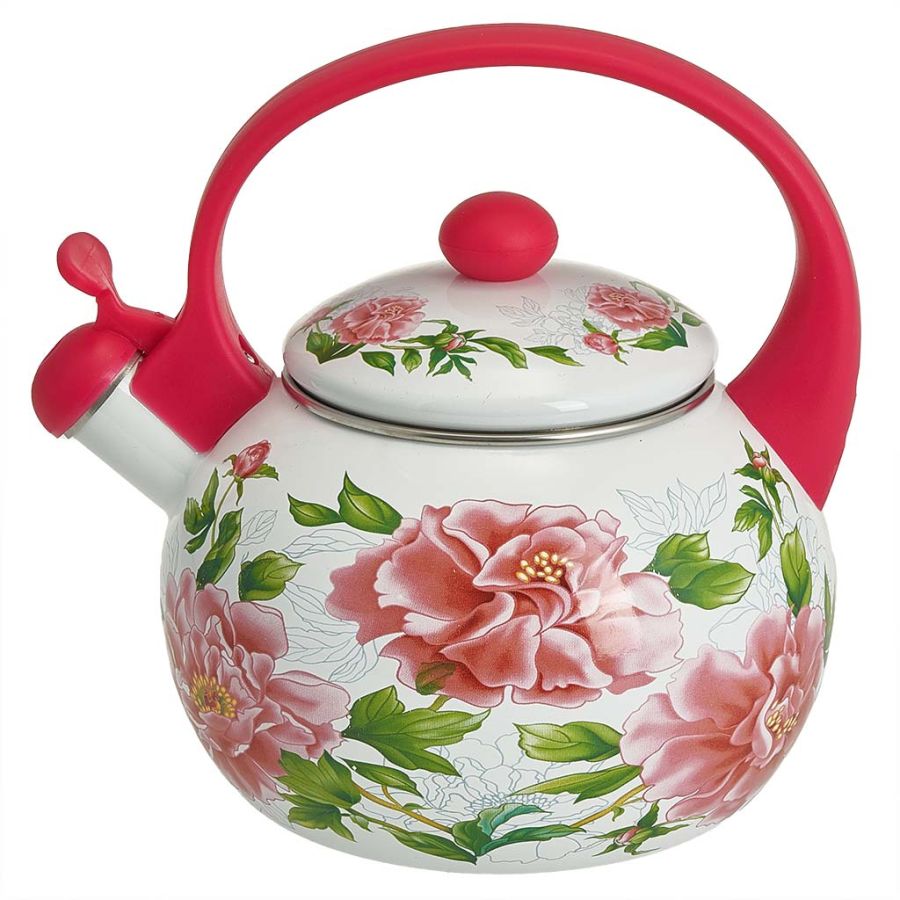 Чайник эм. 2,5л, со свистком, пласт. ручка, индукция "METALLONI "Пионы" (6) @