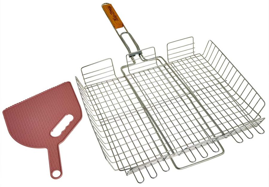 Решетка-гриль (для барбекю) нерж. 420*350*50мм, дер. ручка, пласт. опахало "Жар-Птица"