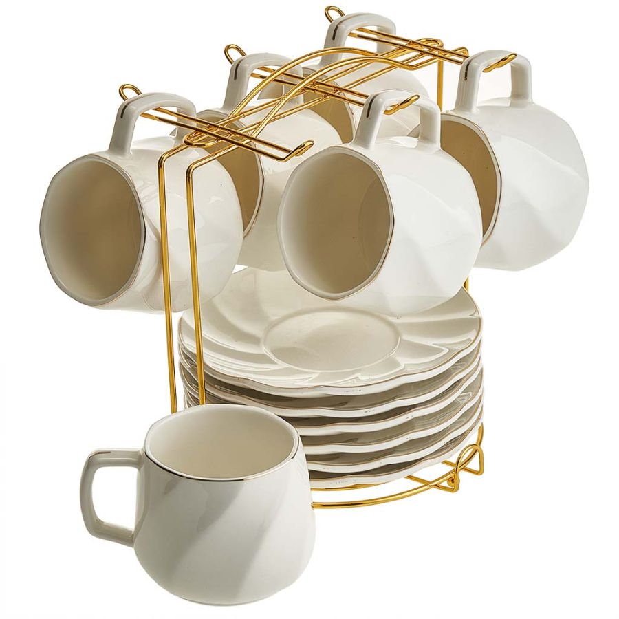 Набор чайный 12пр 220мл фарфор, на мет. подставке "Айвори"