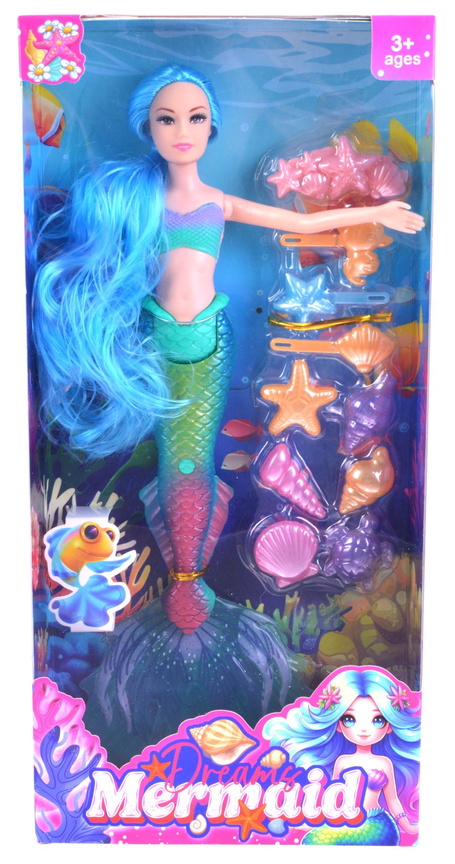 Русалка с розовыми волосами + аксессуары 38*18см коробка 388B6