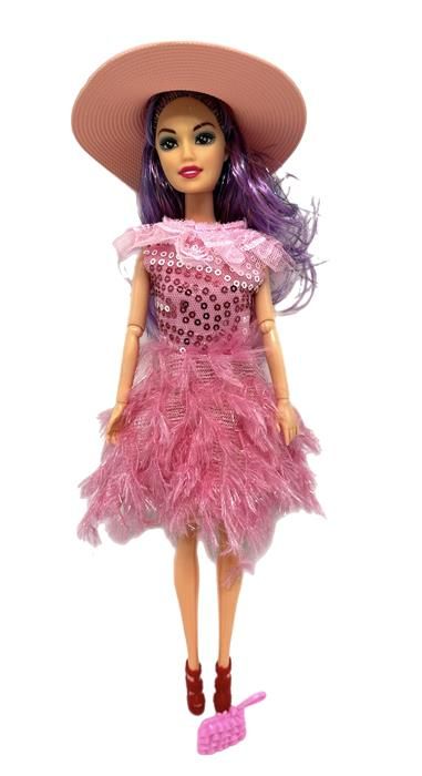 Кукла шарнир.руки в платье с розовой бахромой + шляпка 32*11см /коробка TL8011A6