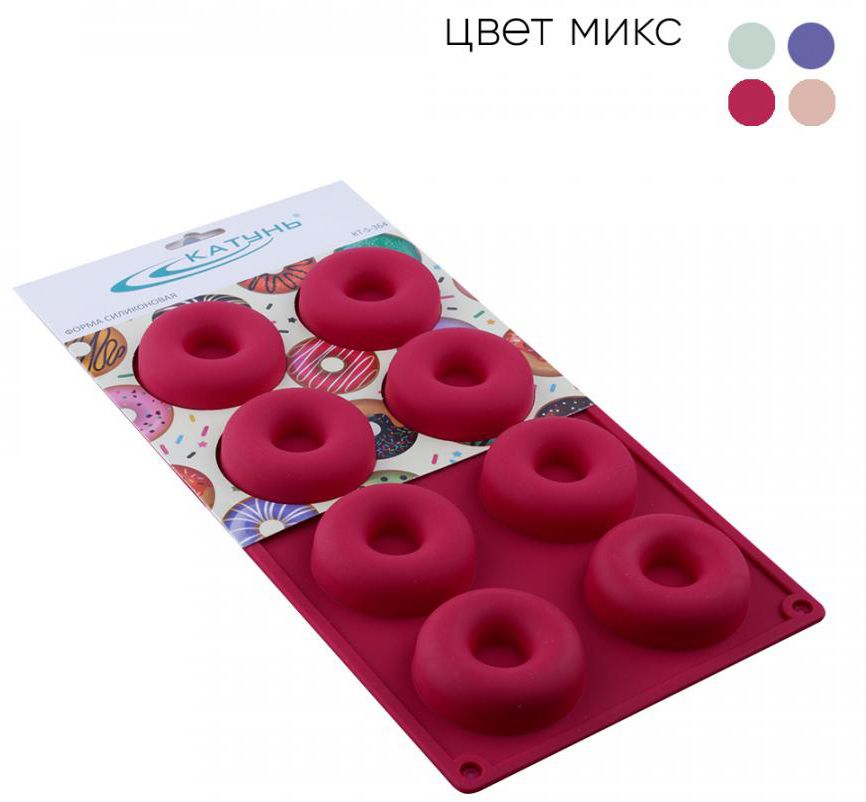 Форма для выпечки силикон 29,5*17*1,9см, 8 ячеек "Пончики маленькие" цвет микс