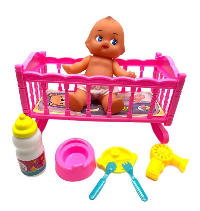Пупс + кроватка + аксессуары 25*28см пакет 669-700D