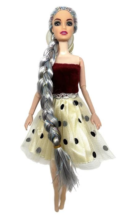 Кукла шарнир.руки платье бордовое/горох 32*10см коробка Y018A14