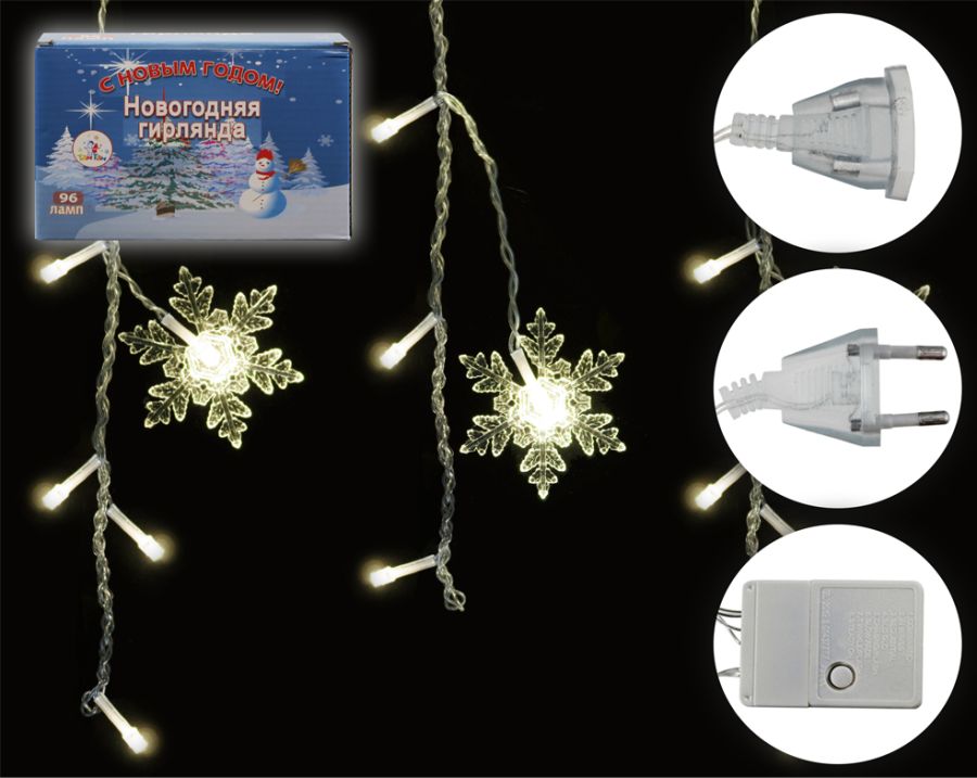 Гирлянда светодиодная 4м,96 лампочек, теплый белый