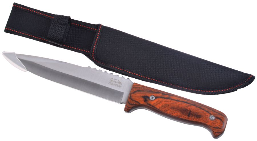 Нож туристический 18см (30см с рукоятью), ручка под дерево, в чехле@