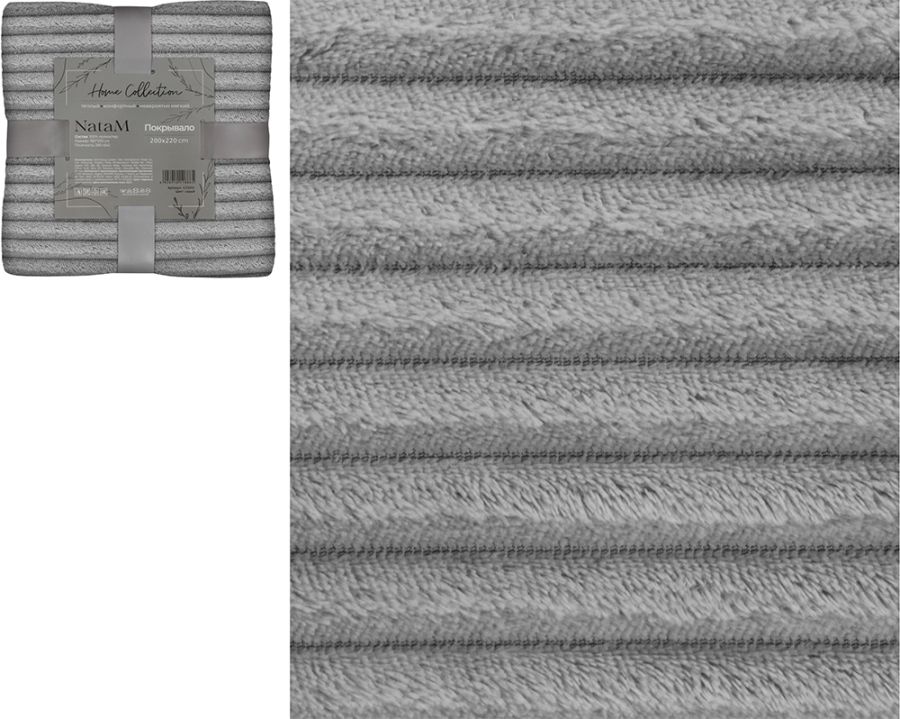 Покрывало фланелевое 200*220см, 250гр/м2 "Полоска" серо-бежевый