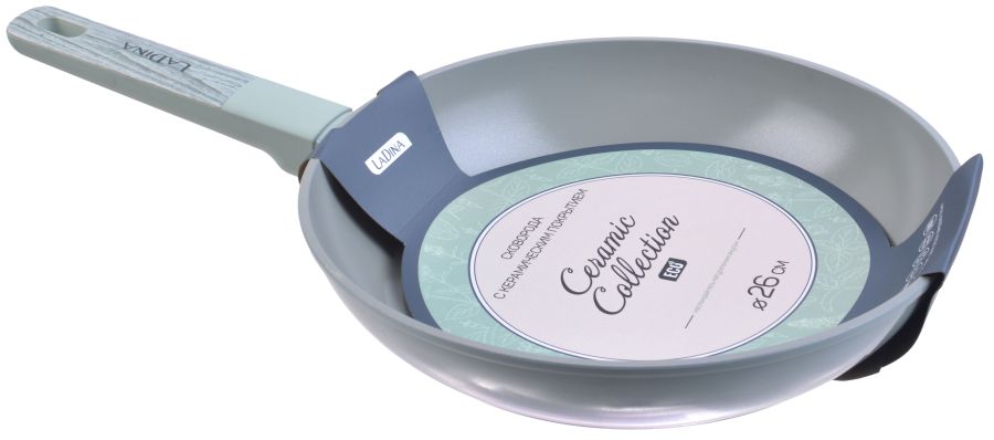 Сковорода ал. 260мм, пласт. ручка, серое керам. а/п индукция "LaDina" мятная