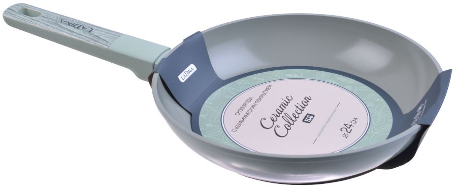 Сковорода ал. 240мм, пласт. ручка, серое керам. а/п индукция "LaDina" мятная