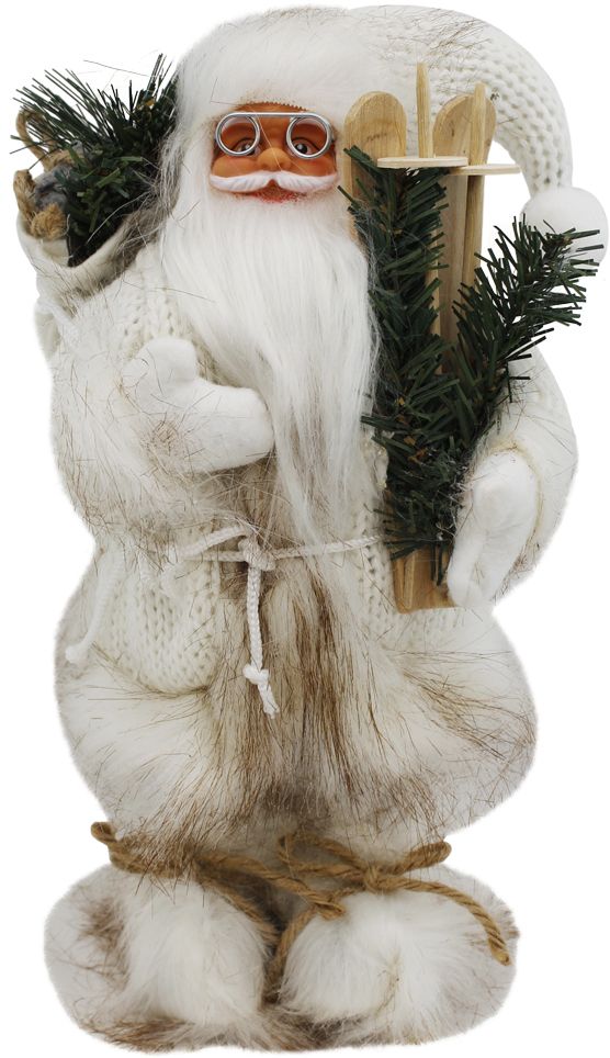 Дед Мороз 41см с мешком и лыжами, молочный