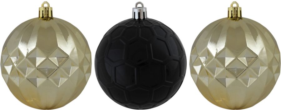 Елочное украшение Шар 8см 3шт Футуризм черный+золото