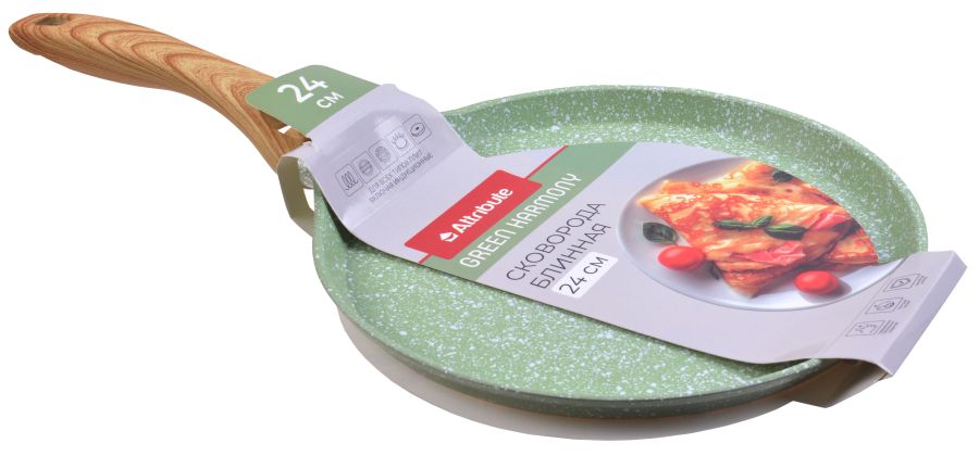Сковорода блинная (блинница) ал. 240мм, ручка под дерево, а/п, индукция "Green harmony" зеленая (6)