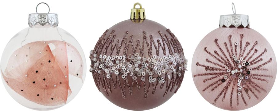 Елочное украшение Шар 8см 3шт Нежный момент Цвет: пастельно-розовый