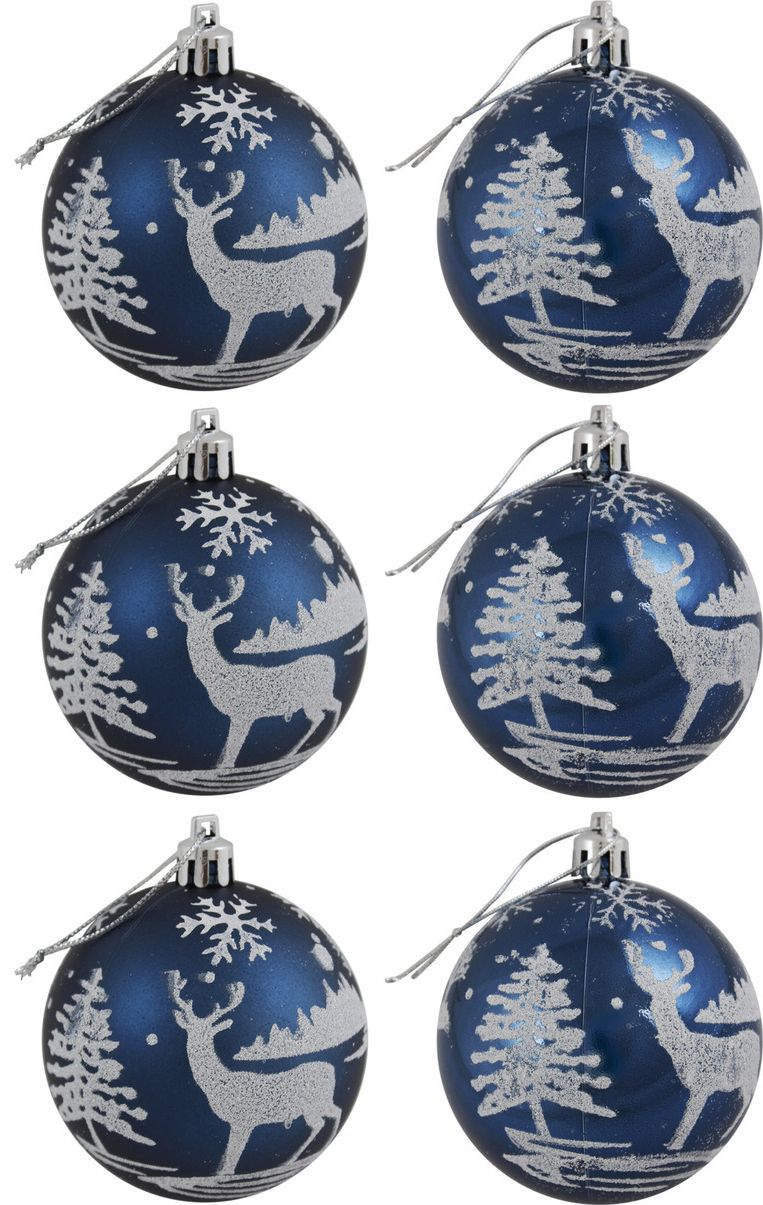 Елочное украшение Шар 7см 6шт Олень в лесу, темно-синий