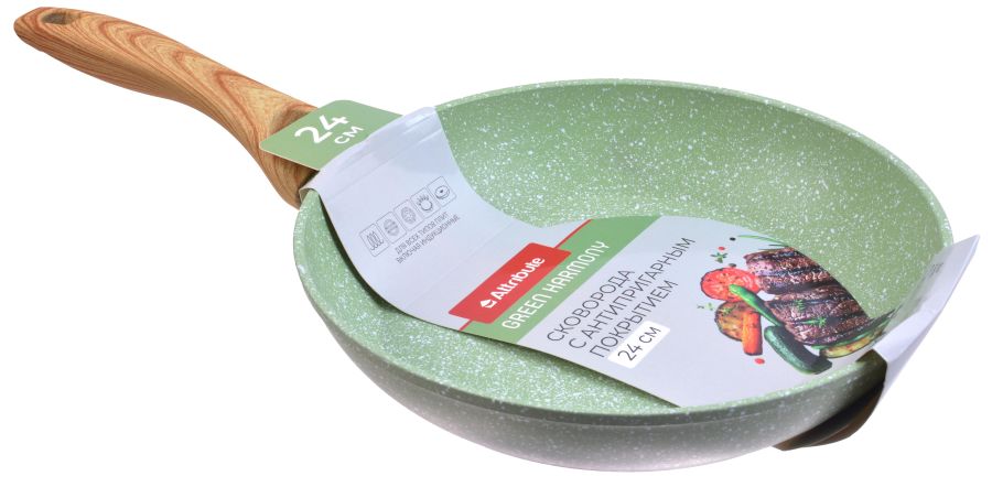 Сковорода ал. 240мм, ручка под дерево, а/п, индукция "Attribute "Green harmony" зеленый гранит (6)