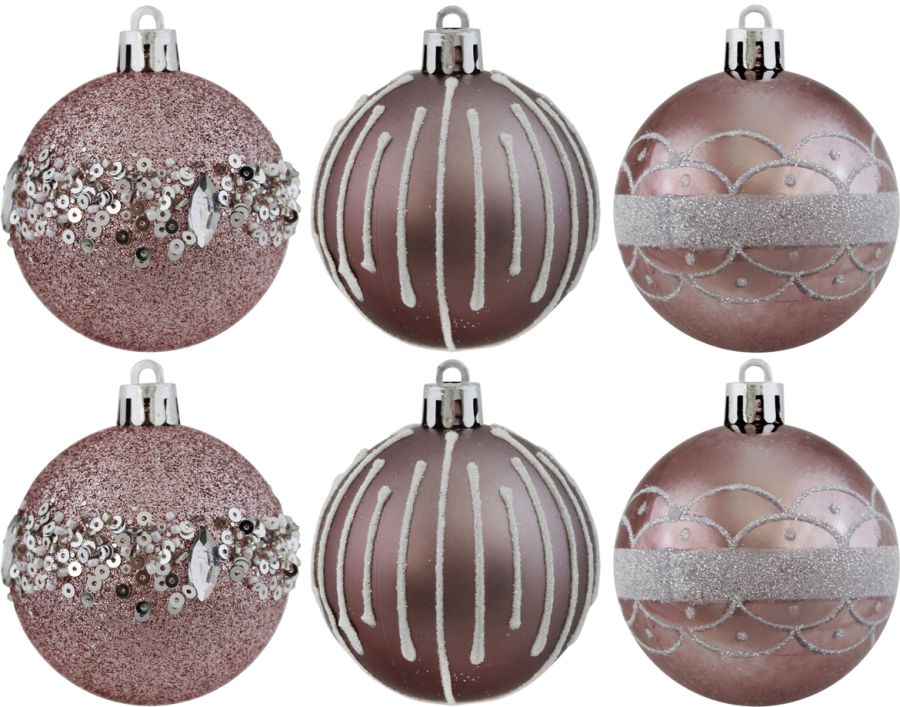 Елочное украшение Шар 6см 6шт Узор зимы Цвет: темно-розовый