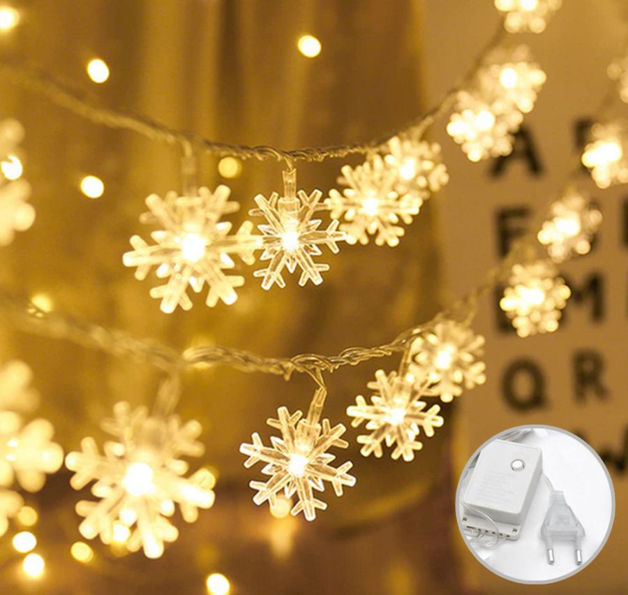 Гирлянда светодиодная "Снежинки" 8м ,100 Led 8 режимов теплый белый