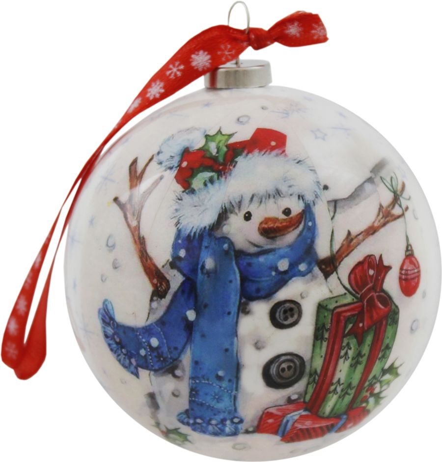 Елочное украшение Шар 7,5см Снеговик с подарком