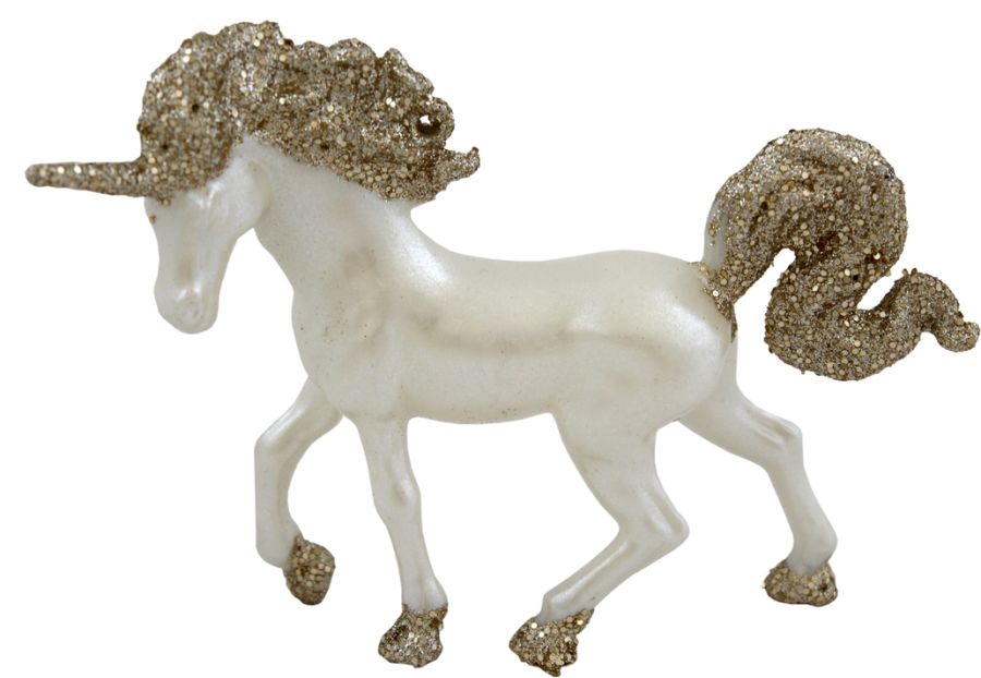 Елочное украшение Единорог 16*11см бело-золотой
