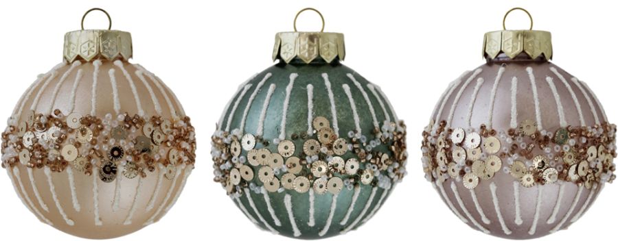 Елочное украшение Шар 7см 3шт Нежные мотивы (розовый+мятный+кремовый)