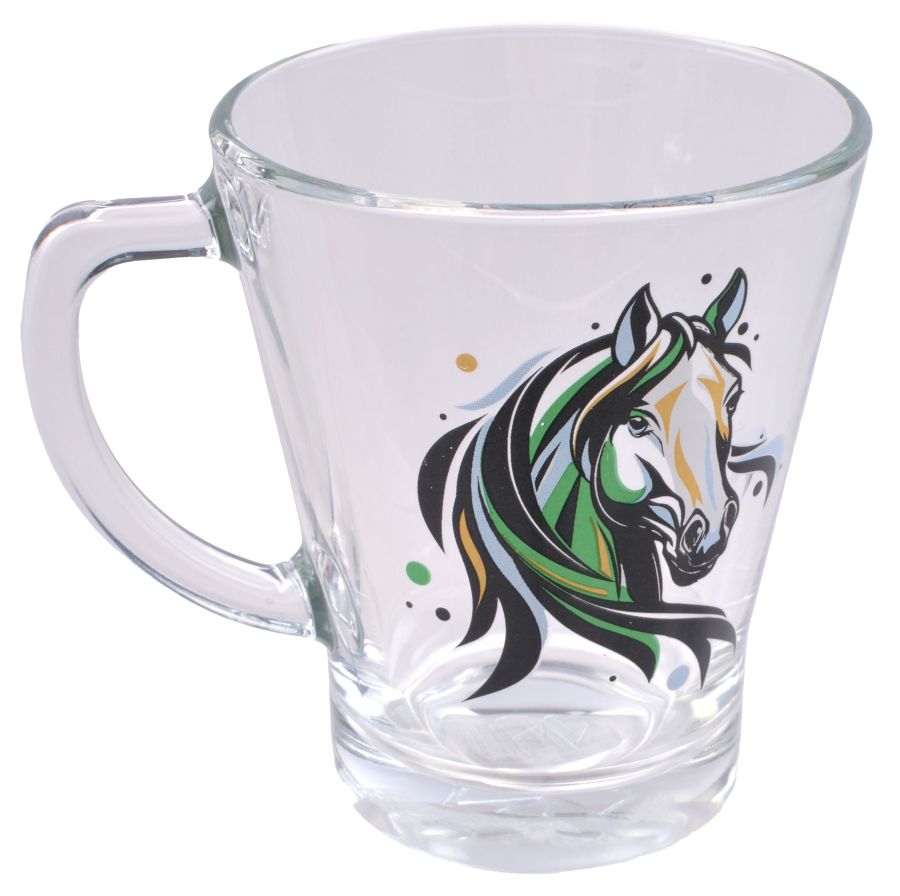 Кружка 300мл стекло Аура Символ года 2026 "Лошади колор" (15)@