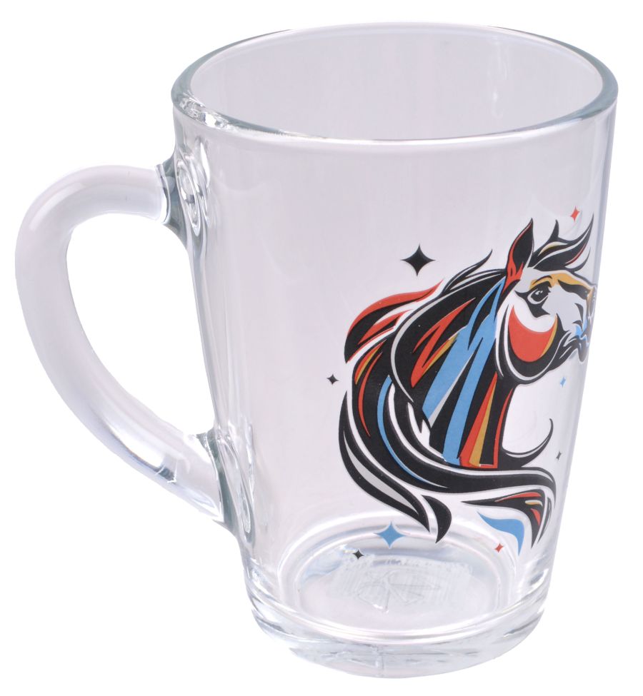 Кружка 300мл стекло капучино Символ года 2026 "Лошади колор" (20)@