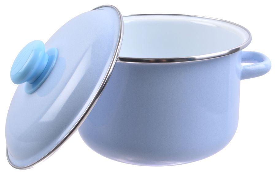 Кастрюля эм. 3л, эм. крышка с пласт. кнопкой, цилиндр с ободком, белая внутри, цвет серо-голубой (6)