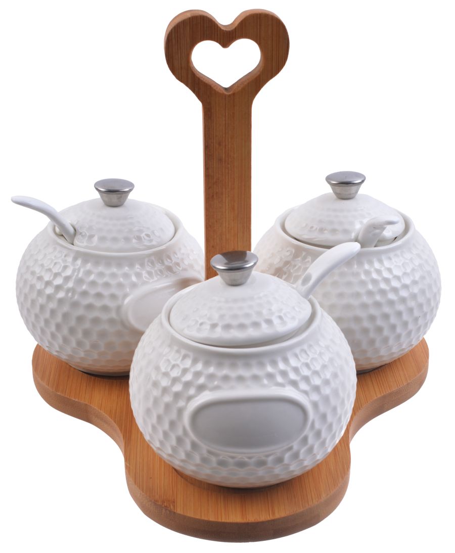 Набор банок для специй 3шт на бамбук. подставке фарфор@