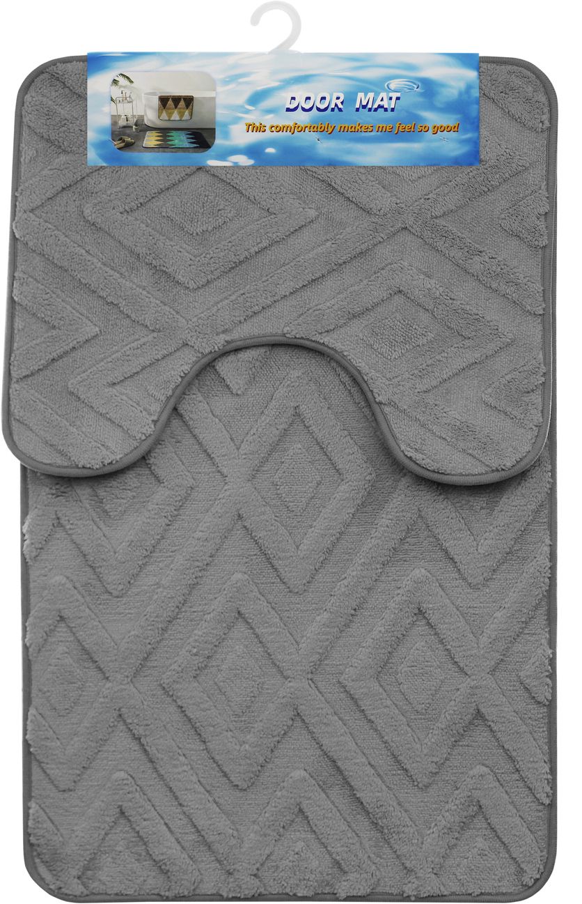 Набор ковриков для ванной и туалета 2шт полиэстер (50*80см; 50*40см) "Ромб" серый