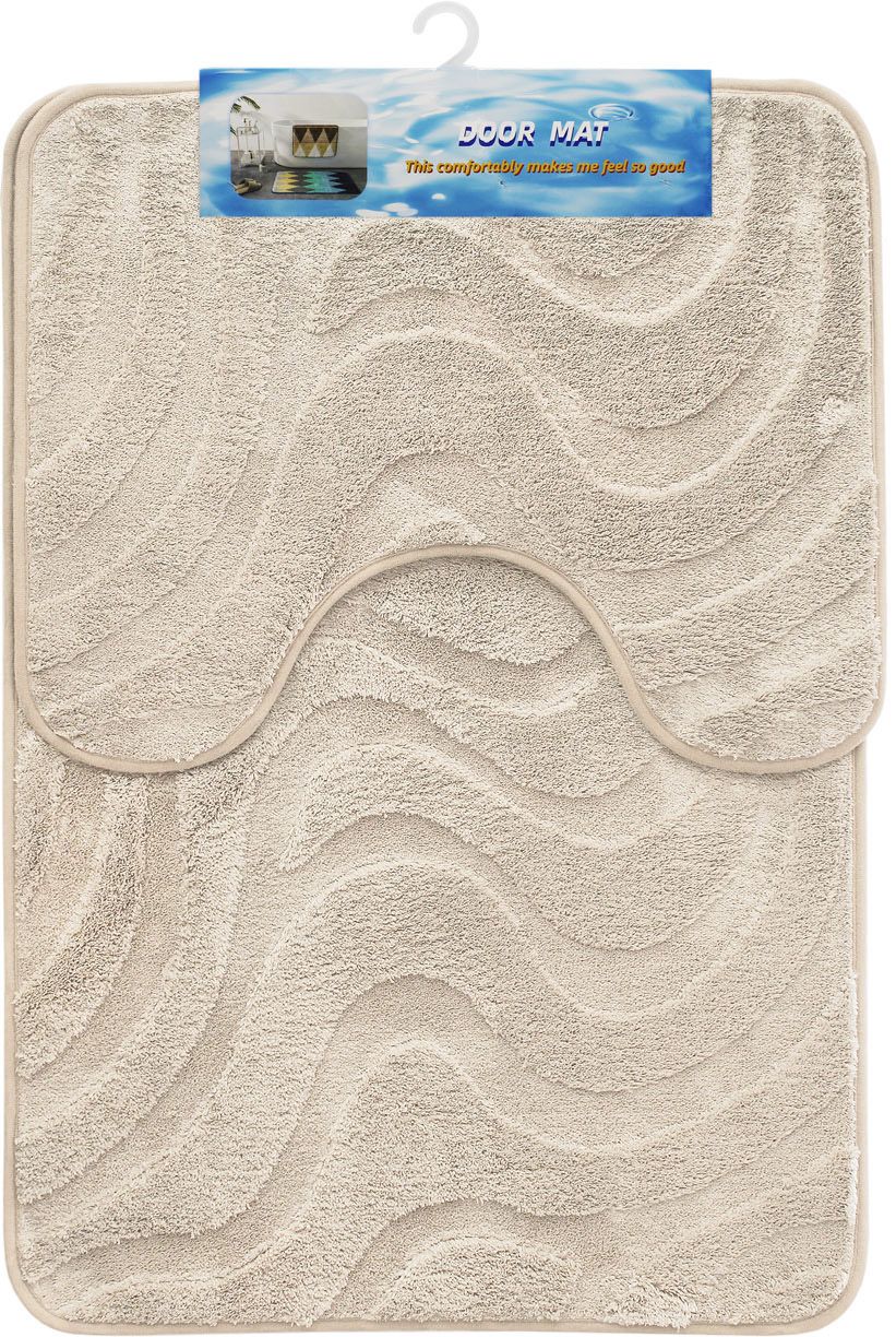 Набор ковриков для ванной и туалета 2шт полиэстер (60*90см; 50*60см) "Волна" молочный