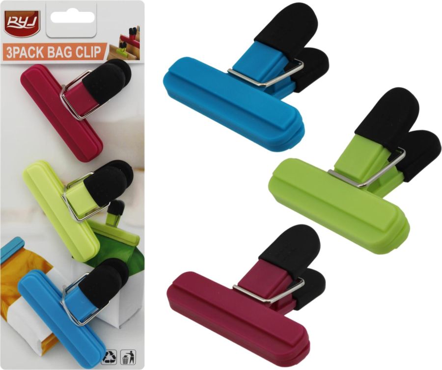 Зажимы для пакетов пласт. 7,5*6,5*3,5см, НАБОР 3шт, широкие, цвет микс