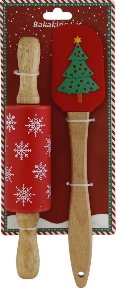 Набор кулинарный силикон 2пр (скалка, лопатка), дер. ручки "Елка и снежинки"