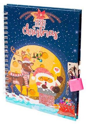 Блокнот 13*18см 50л. ALINGAR спираль "Дед Мороз и подарки" подар.,замочек,линия