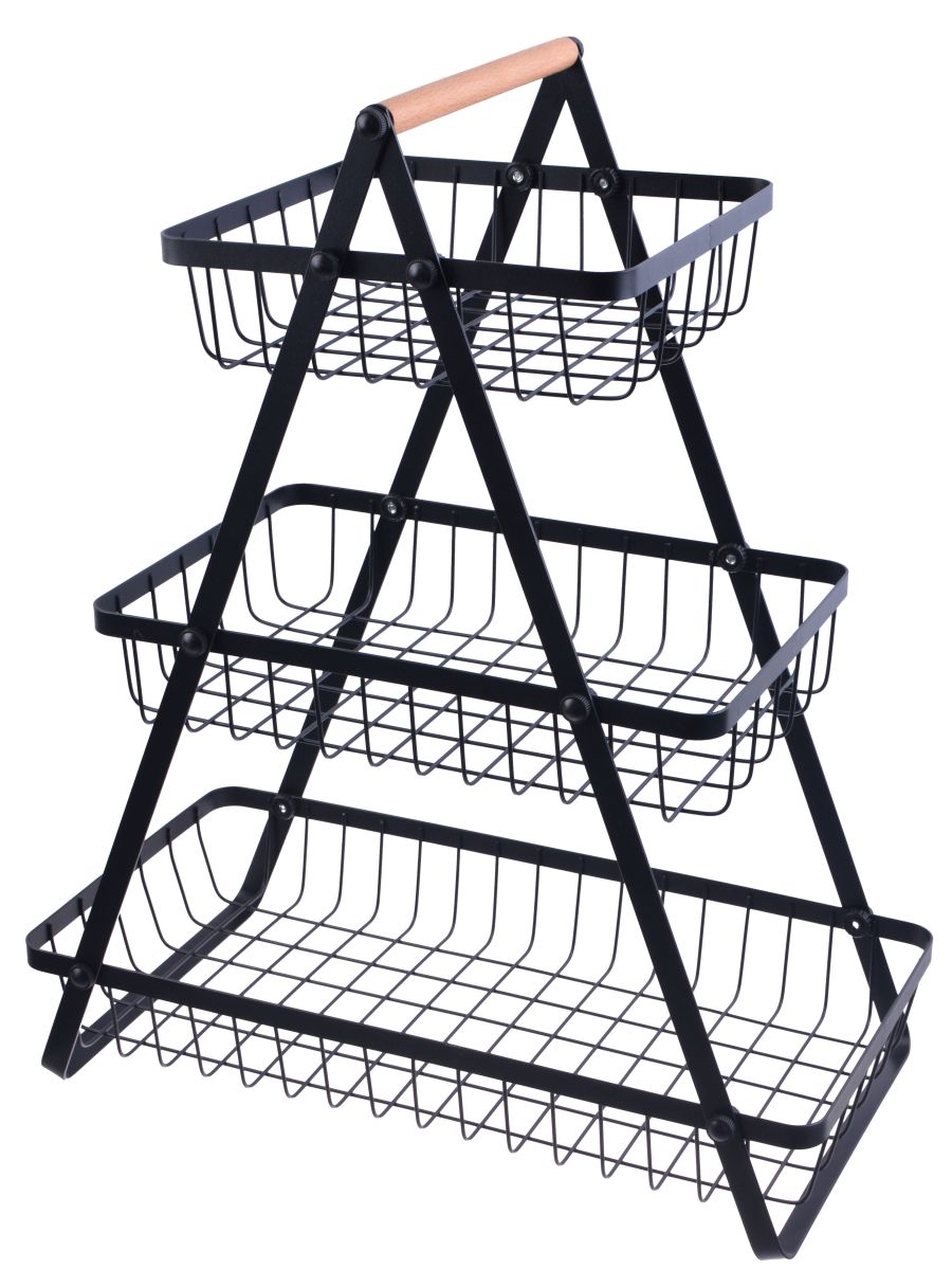Ваза для фруктов (фруктовница) 3-х ярусная сталь 40,5*19*49см с ручкой, черная