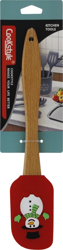 Лопатка кулинарная силикон 25,6*5,3см, дер. ручка "Снеговик"