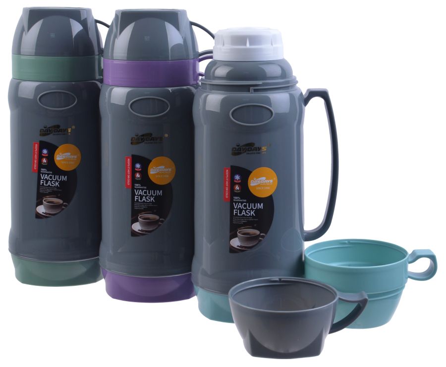 Термос пласт. 1л, ст. колба, крышка-чашка, цвет микс