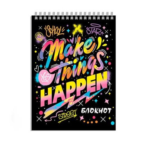 Блокнот А7 40л. ФЕНИКС спираль "Леттеринг" выб.уф-лак,глиттер,блок-офсет,клетка